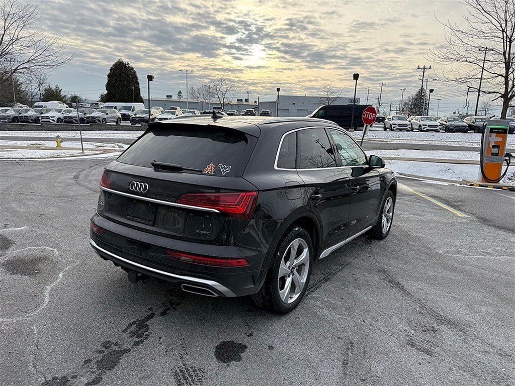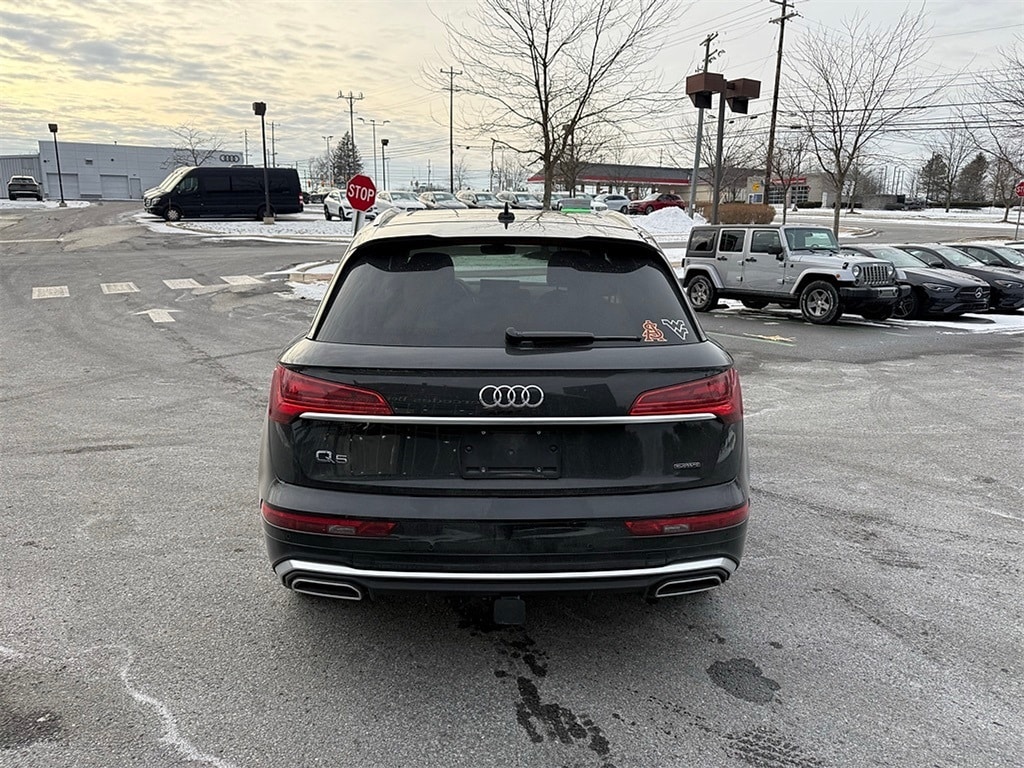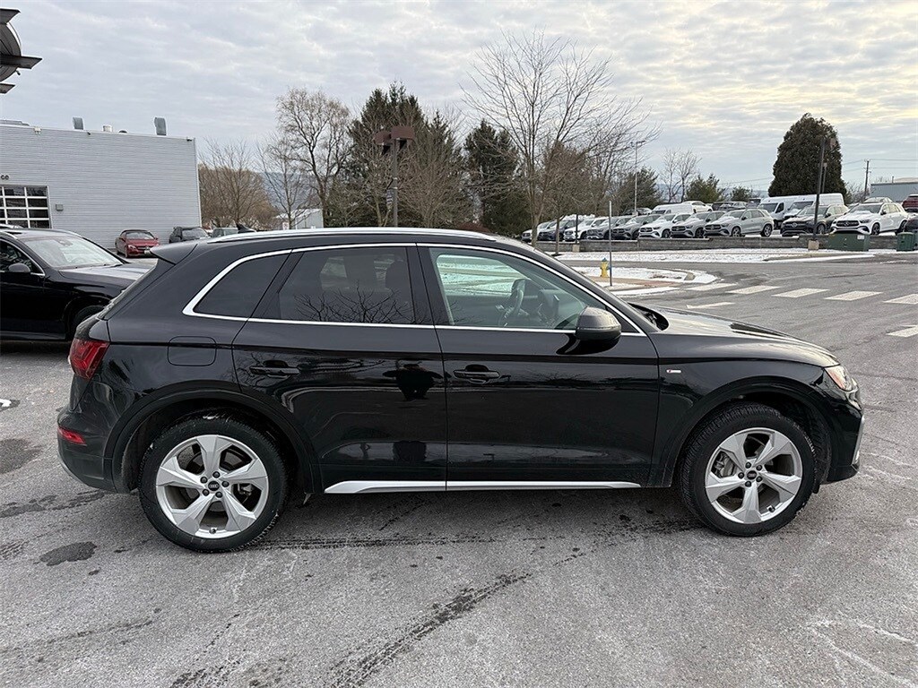 CARFAX One-Owner. Clean CARFAX. 2023 Audi Q5 45 S line Premium quattro Black Leather, 10 Speakers, 4-Wheel Disc Brakes, 5.302 Axle Ratio, ABS brakes, Air Conditioning, All-Weather Floor Mats, Alloy wheels, AM/FM radio, Audi Active Lane Assist, Audi Advanced Key, Audi Beam-Rings, Audi Connect PLUS, Audi Guard Protection Kit, Audi Virtual Cockpit Plus, Auto-Dimming Power Folding Exterior Mirrors, Auto-dimming Rear-View mirror, Automatic temperature control, Bang & Olufsen Sound System w/3D Sound, Brake assist, Bumpers: body-color, Cargo Mat, Compass, Convenience Package, Delay-off headlights, Driver door bin, Driver Seat Memory, Driver vanity mirror, Dual front impact airbags, Dual front side impact airbags, Electric Powered Steering Column Delete (DISC), Electronic Stability Control, Emergency communication system: Audi connect CARE, Exterior Parking Camera Rear, Four wheel independent suspension, Front anti-roll bar, Front Bucket Seats, Front Center Armrest, Front dual zone A/C, Front fog lights, Front reading lights, Garage door transmitter: HomeLink, Genuine wood console insert, Genuine wood dashboard insert, Genuine wood door panel insert, Gray-Brown Birch Natural Wood Inlays, Hands-On Detection Steering Wheel, Heated 8-Way Power Front Bucket Seats, Heated door mirrors, Heated front seats, Heated Steering Wheel, Illuminated entry, Leather Seating Surfaces, Leather Shift Knob, Leatherette Covered Center Console & Door Armrests, Low tire pressure warning, MMI Navigation Plus, Navigation Package, Occupant sensing airbag, Outside temperature display, Overhead airbag, Overhead console, Panic alarm, Panoramic Sunroof, Passenger door bin, Passenger vanity mirror, Power Adjustable Steering Column, Power door mirrors, Power driver seat, Power Liftgate, Power passenger seat, Power steering, Power windows, Premium Plus Package, Privacy Trunk Cover, Radio data system, Radio: Audi Sound System, Rain sensing wipers, Rear air conditioning, Rear anti-roll bar, Rear fog lights, Rear reading lights, Rear seat center armrest, Rear window defroster, Rear window wiper, Remote keyless entry, Roof rack, Security system, SiriusXM w/360L, Speed control, Speed-sensing steering, Speed-Sensitive Wipers, Split folding rear seat, Spoiler, Steering wheel mounted audio controls, Tachometer, Telescoping steering wheel, Tilt steering wheel, Top View Camera System, Traction control, Traffic Jam Assist, Trailer Hitch, Trip computer, Turn signal indicator mirrors, Variably intermittent wipers, Wheels: 18" 5-Arm-Turbine Design, Wheels: 19" 5-Double-Arm Design Bi-Color Finish, Wheels: 20" 5-Arm Design, Black Leather.