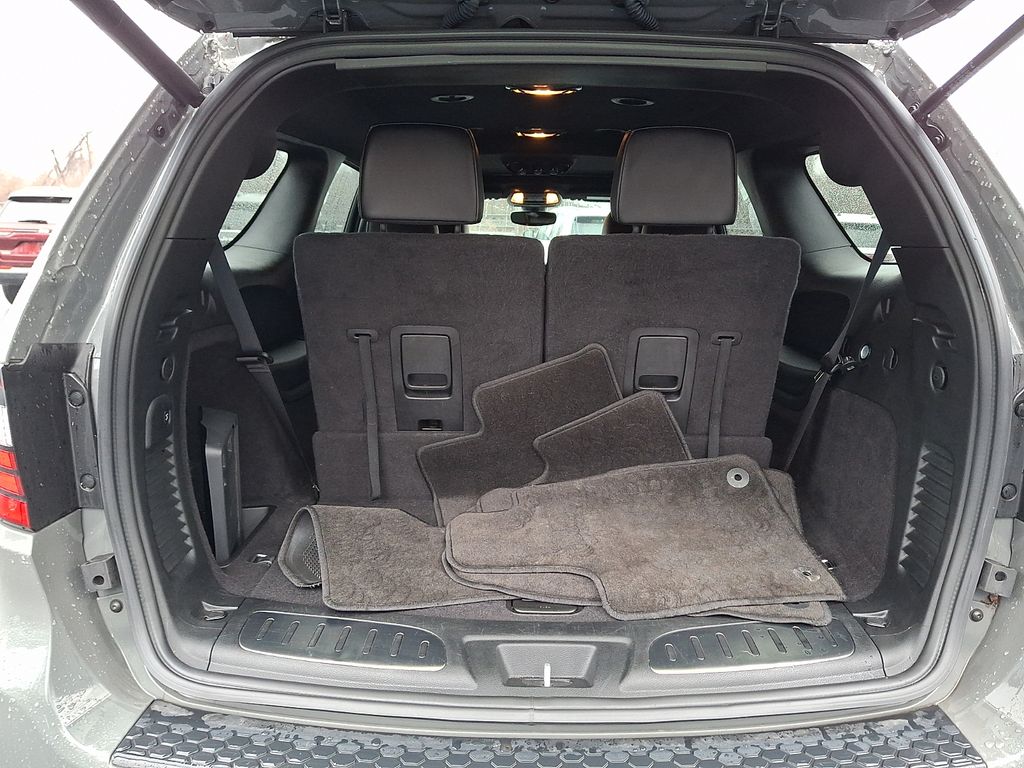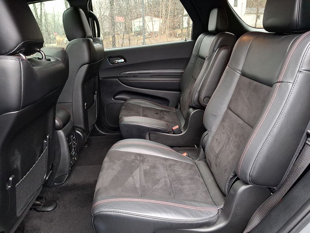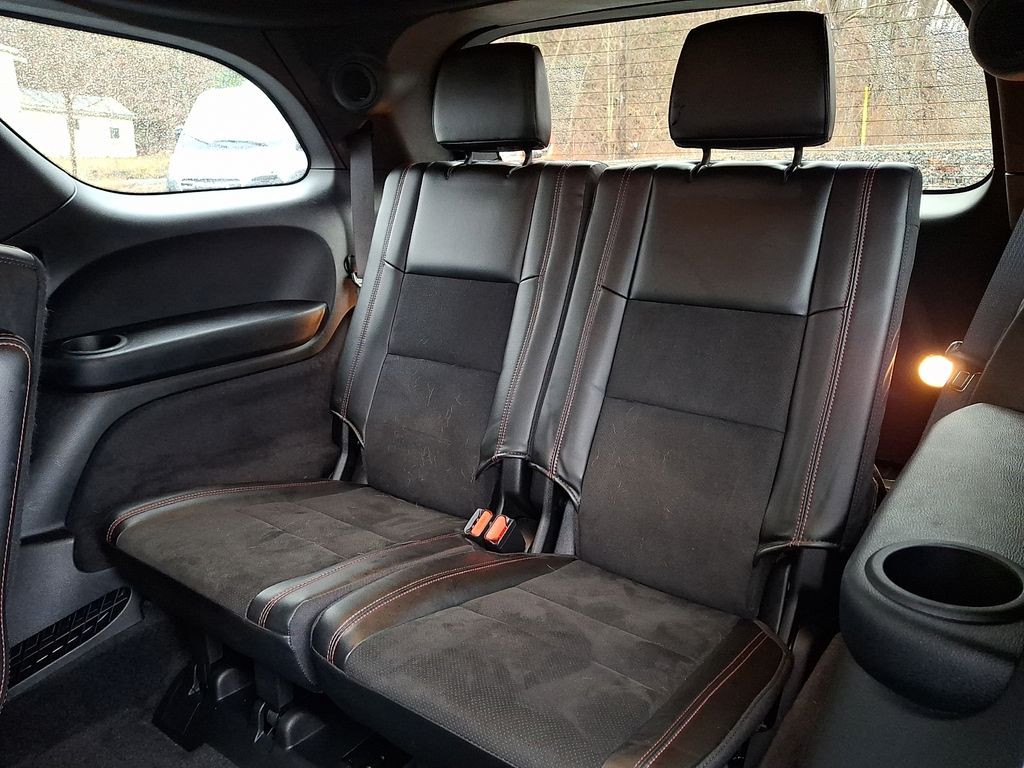 Elevating the Durango R/T's striking presence is the Blacktop Package, which includes 20-inch black noise aluminum wheels, a satin black Dodge tail lamp badge, and gloss black exterior accents. The 2nd row fold/tumble captain's chairs provide versatile seating, while the power sunroof floods the cabin with natural light, creating a truly inviting atmosphere.