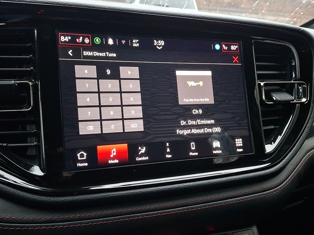 Indulge in the convenience of the Uconnect 5 navigation system with a 10.1-inch display, seamlessly integrating your digital world. Enjoy the rich, immersive sound of the 9-speaker audio system, complete with SiriusXM 360L and audio memory. The Durango R/T also features a host of advanced safety technologies, including Parkview Rear Back-Up Camera, Auto High-Beam Headlights, and Electronic Stability Control, ensuring your peace of mind on every journey.