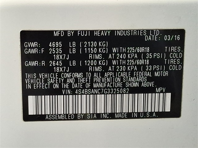 2016 Subaru Outback 2.5i SUV 4-Cylinder DOHC 16V