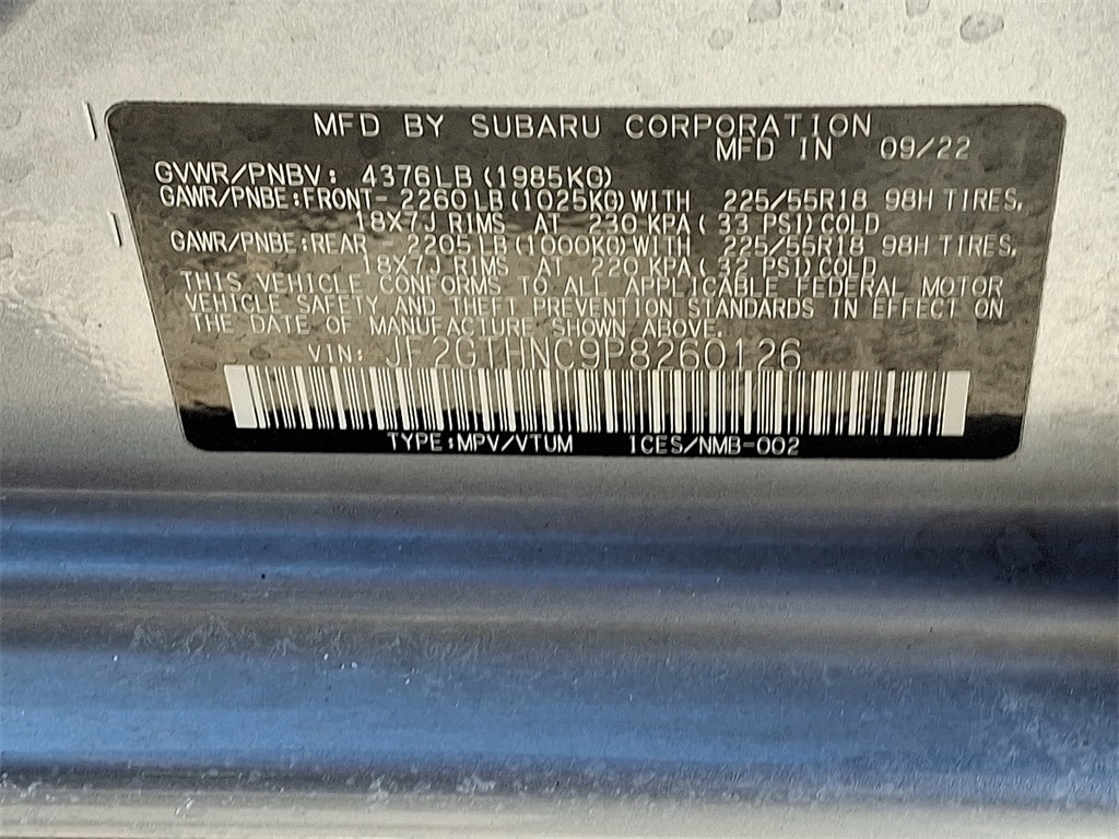 All-Weather Floor Liners, AM/FM radio: SiriusXM, Auto-Dimming Mirror w/Compass & HomeLink, Exterior Parking Camera Rear, harman/kardon Speaker System, Heated front seats, Leather-Trimmed Upholstery, Moonroof & Navigation & harman/kardon Audio, Power driver seat, Power Moonroof, Radio: Subaru STARLINK 8.0" Multimedia Nav System, Remote keyless entry, Split folding rear seat, Steering wheel mounted audio controls, Traction control, Wheels: 18" x 7.0J Alum Alloy Blk w/Machine Finish.